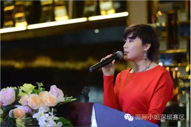 第56屆國(guó)際小姐深圳賽區(qū)總策劃Sophie小姐上臺(tái)致辭。