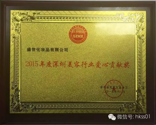 王俊華女士為2015年度深圳服務優質美容院獲得者頒獎。