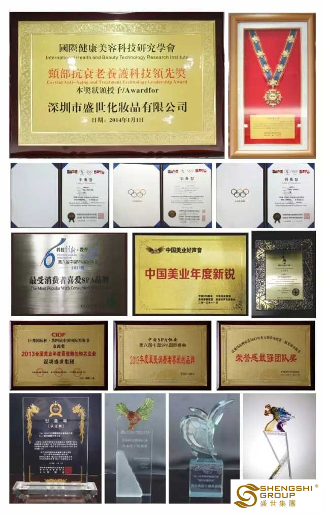 盛世品牌憑借卓越的品質,獲美業權威機構、專家、廣大消費者的一致認可;曾榮獲“2016年度生活美容品牌企業獎”,“2016年度最佳供應商大獎”,“2015中國貢獻大獎”,“2014亞洲卓越品牌權威大獎”,“2013最受消費者喜愛品牌獎”等。